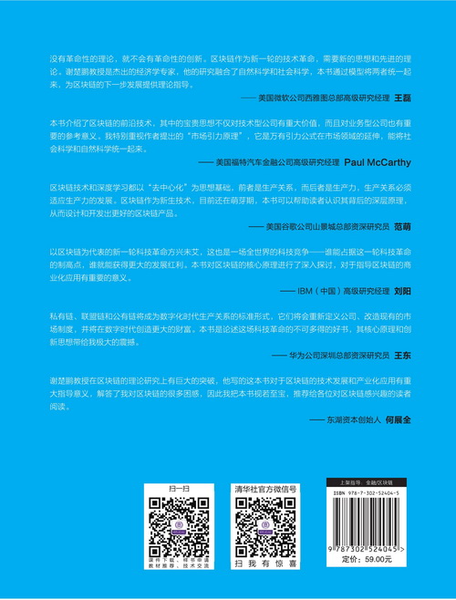 谢楚鹏:曾任花旗银行、IBM公司高级研究员,现任国内高校经济学教授、博导。曾在美国和中国从事大数据分析和数据挖掘相关的工作,作为负责人完成多项大型项目,有极为丰富的理论和实际经验。目前主要研究区块链、深度学习和强化学习。