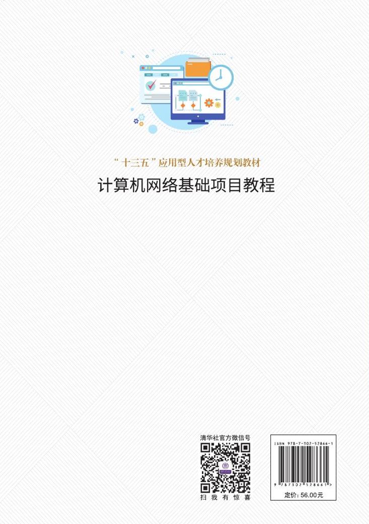 本书内容以项目为载体,通过网络认识、网络应用、服务器架构、企业网组建、局域网组建、无线局域网组建、Internet的接入、网络管理与安全、网络新技术、综合实训等项目,突出能力培养,引导学生学习计算机网络基础知识和基本技能。项目后配有“职业资格度量”,用于评价真实能力,以检验所掌握理论和技能是否可以满足行业企业的需求。 本书内容取舍得当,图文并茂,易于理解;文字条理分明,简洁流畅,易于学习;操作有计划、有步骤,易于提高能力。 本书适合作为高职高专院校计算机类、电子信息类、通信类及相关专业的教材,也可作为职业培训的教材或自学者的参考用书。