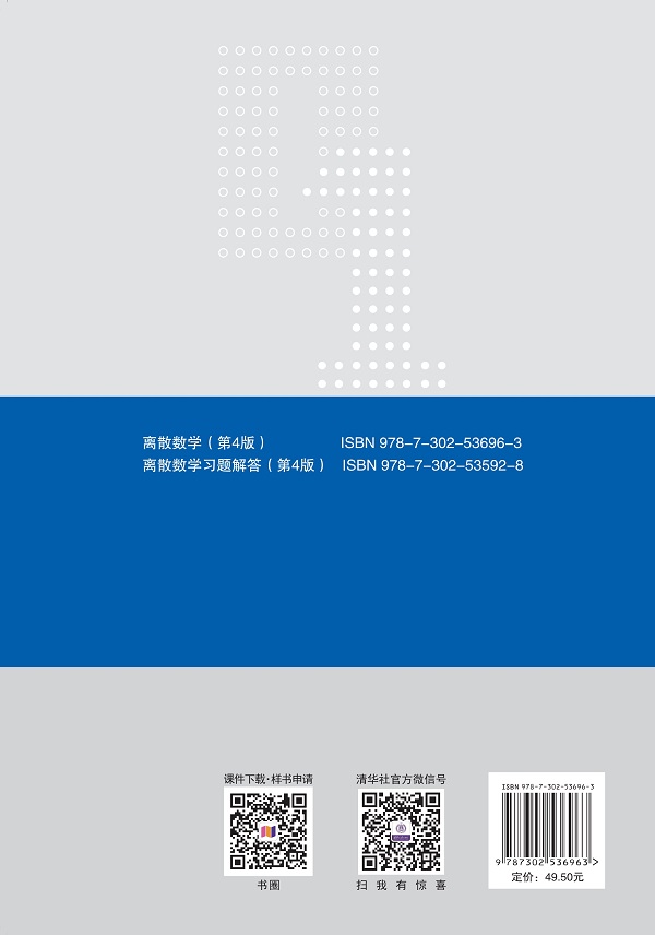 前言 离散数学是研究离散量的结构及关系的学科,它的研究对象与计算机所处理的对象一致. 离散数学是教育部2009年发布的“高等学校计算机科学与技术专业核心课程教学实施方案”中的8门核心课程(程序设计语言、离散数学、数据结构与算法、计算机组成原理、操作系统、计算机网络、数据库和软件工程)之一,在计算机科学与技术专业教学体系中起着重要的基础理论支撑作用. 本书自出版以来被多所高校选用,已多次印刷,并于2012年入选普通高等教育“十二五”国家级规划教材.根据教育部的要求,入选教材应持续修订完善,及时补充反映最新知识、技术和成果的内容,与时俱进.为此,编者根据全国高等学校“培养计算机类专业学生解决复杂工程问题能力”研究组的研究成果《培养计算机类专业学生解决复杂工程问题能力》和教育部计算机类教学指导委员会制定的《计算机类专业教学质量国家标准》,对本书第3版做了如下修订: (1) 在第1章给出了常见的证明方法: 直接法、举反例法、数学归纳法和反证法等. (2) 将初等数论知识从第3版的第1章和第2章中抽出来,并进行了系统化,单独作为第5章。这主要是为了突出数论的重要性,也是为了让第1章和第2章更集中于集合论知识的讲解. (3) 考虑到大多数学校的学时和教学情况,精简了代数结构的内容,并将其调整到本书的最后,作为第9章. 本着离散数学为计算机科学与技术专业的其他专业课程(如数据结构、操作系统、计算机组成原理、数据库原理、算法设计与分析、编译原理、软件工程、计算机网络、人工智能、形式语言与自动机等)的学习提供必要数学基础的原则,全书共分9章,主要内容为: 集合、映射与运算,关系,...