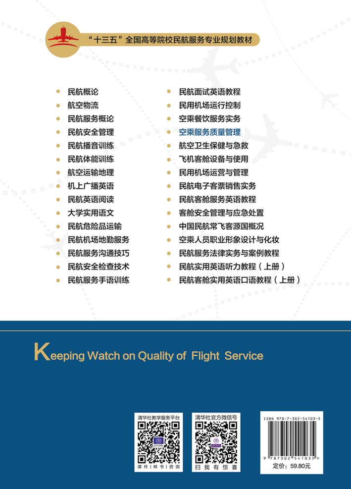 空乘服务质量管理从质量管理的一般原理入手,结合民航服务的特点,试图从民航服务最直观感受的空乘服务角度,阐述民航服务质量管理的方法与途径。全书从空乘服务质量管理基础知识、空乘服务质量管理的理念、空乘服务质量管理方法、空乘服务质量管理实施等四大模块构建空乘服务质量管理体系,分为9个章节进行介绍。本教材根据教育部空中乘务专业和中国民用航空局对空乘人员素质、能力的要求为指导思想,引入民航服务的**知识成果,构建起完善的理论知识体系和实际操作体系,具有系统性、专业性、实用性和创新性等特点。