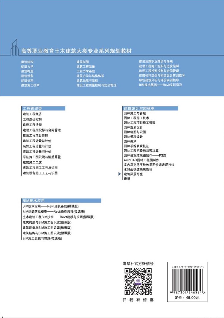 本书以大量的图例与绘画步骤供学生们学习、欣赏、使学生直观进行学习。本书共分四大部分:概论、建筑写生的基础知识、建筑写生实践的表现、建筑写生分类及表现步骤。本书参与编著的老师们都是工作在教学一线的资深教师,以培养技术型、技能型、应用型人才的目标为出发点,注重理论与实践相结合,提升了学生的学习能力与技巧。本书可作为教材使用,还可以作为行业爱好者的自学辅导用书。