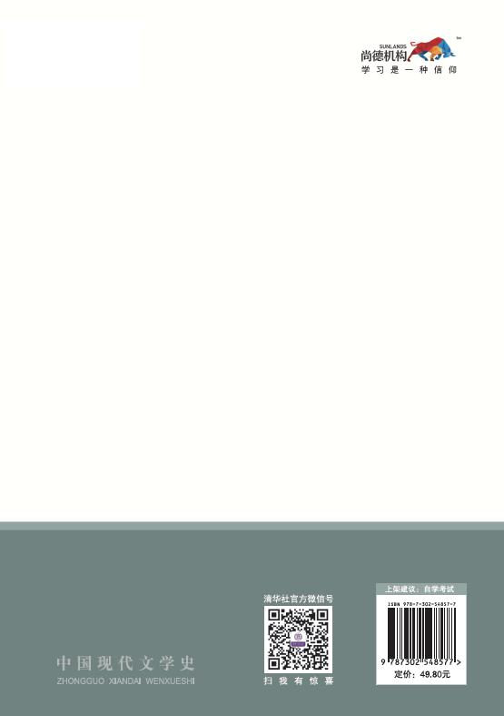 本书编委会 主编尚德机构学术中心 副主编欧蓬刘通博杜铮高智威 编者赵梦尧马明明赖莎莎孙涛《中国现代文学史》一书,主要介绍自“五四”运动以来现代文学的发展脉络,内容包括文学革命与“五四”新文学、20世纪30年代文学、40年代文学、50—70年代文学以及新时期文学五个部分。 本书严格依据最新版自学考试大纲编写,通过对历年真题的深度分析和研究,有助于考生在把握现代文学思潮兴替的基础上,深层把握现代文学流派、现代文学团体的理论主张与创作风格、重要作家作品的创作特色等内容。希望考生能在此书的帮助下,顺利通过考试、实现梦想。全书思维导图 全书思维导图为我们呈现了本书的整体知识脉络,通过导图可以清晰地看出每章所需要掌握的主要知识点有哪些。学习的过程是对框架充实的过程,犹如亲手为树枝添加一片片的绿叶。同样,对于考前复习来说,导图也功不可没。沿着框架,以点带线,由线及面,能够帮助我们快速将知识点串联起来,使一本书由厚变薄,知识点就都装进我们的脑子里了。