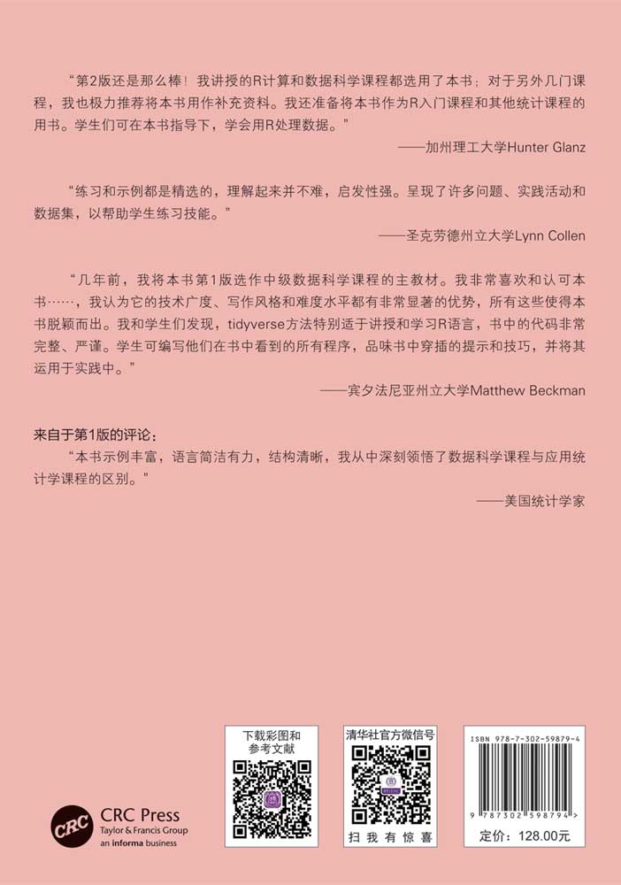 本书对上一版做了全面更新,与日益强 大的tidyverse套包保持同步,纳入sf、purrr、 tidymodels和tidytext等包中的新功能。代码的内 容和格式都经过修改,以方便阅读和理解。部分 章节被拆分、重新组织和重新构思,以适应不断 变化的实践环境。