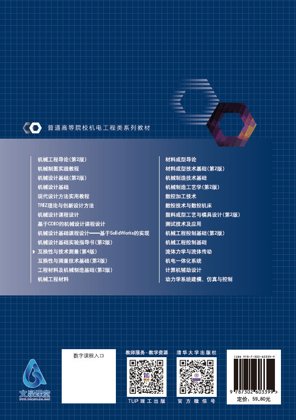 前言 “互换性与技术测量”是应用型高等院校机械类、仪器仪表类和机电结合类各专业重要的主干技术基础课程教材,其内容与机械工业发展紧密相关。本教材切合当前教育改革需要,侧重培养适应21世纪现代工业发展要求的机械类高级应用技术型人才。 在机械产品的精度设计和制造过程中,如何正确应用相关的国家标准和零件精度设计的原则、方法进行机械产品的精度设计,如何运用常用、现代的几何量计量器具和检测技术手段来保证机械零件加工质量是本课程教学的培养目标。 根据应用型本科院校机械类、仪器仪表类和机电结合类各专业的培养目标及对毕业生的基本要求,本书本着注重理论与实践紧密联系的原则,既保证了必要、足够的理论知识内容,又增强了理论知识的应用性、实用性; 既突出了常见几何参数及典型表面的公差要求的标注、查表、解释以及对几何量及其误差的常见检测与验证方案、检验操作的内容,又适当地保证了对国家标准制定的基本原理的解释、分析。以贯穿本书始终的综合实例,说明了理论及其应用的内容,尤其是重点化解了难以理解的理论内容。为了满足教学和自学的需要,巩固和加深对有关内容的理解,本书提供了大量的实训题和适量的习题。 近几年,随着相关技术的迅猛发展,中国标准出版社更新了十几部相关的国家标准,这些标准大多与现行的国际标准“无缝”接轨,并要求推荐采用。为了保证教材的科学性与先进性,本书主要依据最新颁布的国家标准进行编写。 本书由福建工程学院邢闽芳副教授、山东交通学院房强汉副教授和福建工程学院陈丙三教授任主编。本书第1、2、4、6章由邢闽芳编写,第7章由房强汉编写,第3、5、8章由陈丙三编写。参加本书编写工作的还有: 福建工程学...