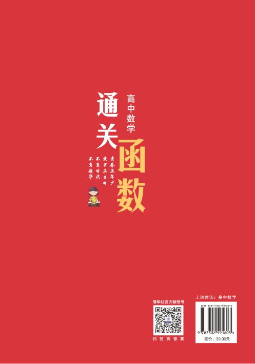 内容简介 本书基于作者团队多年高中教学经验总结,选取高中数学必修课程里的函数及其相关内容编撰成书。书中 第1 章“预备知识”和第2 章“必须了解的八类函数”,构成了本书学习的起点;第3 章“函数的三要素”、 第4 章“函数的四大性质”以及第5 章“数形结合的三层境界”构成了本书的核心,其内容具有普遍性;第6 章“函 数零点的四大问题”和第7 章“恒成立与存在性问题”是函数模块中两大类具体问题,既是重点也是难点,常 考常新。另本书附赠141节免费视频微课,便于学生对函数知识的深度理解及灵活掌握。