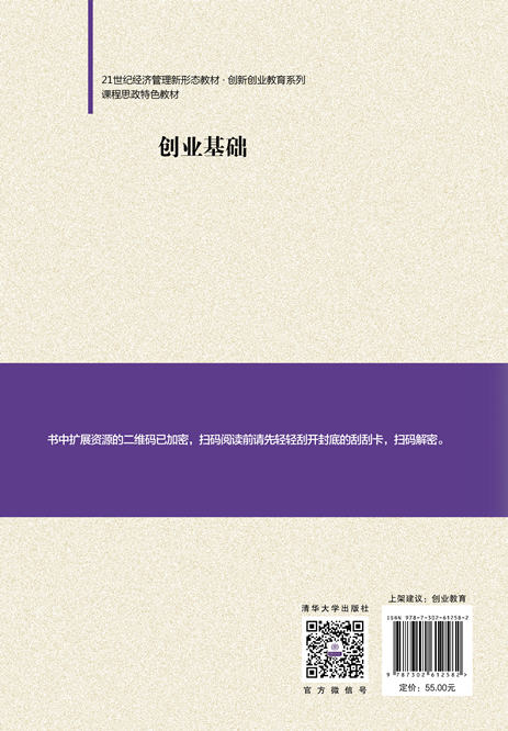 前言 随着新世纪创业型经济在全球的展开,创业在推动经济发展、促进科技进步、解决 就业等方面的作用更加凸显。十八大以来,在全球经济下行、我国社会经济转型升级发 展的关键时刻,因为创新创业,新企业如雨后春笋,不断创造新岗位,推动着时代的发 展和进步;因为创新创业,引领了科学技术进步,塑造了商业的繁荣;因为创新创业, 我们拥有琳琅满目的新产品和新服务,创造了数量众多的就业岗位;因为创新创业,激 发了人们的创造潜能,展现了创业者的商业才华;因为创新创业,培育了宝贵的创业 精神,增强了社会责任感。不得不说,创新创业成为经济增长的“推进器”、科技迭代的“孵 化器”、就业岗位的“增容器”。创业活动推动创业型社会的构建,得到国家的支持和 社会的认可,创业知识逐步普及,创业研究不断深入,创业精神更是受人尊崇。创业教 育也走进了大学课堂,成为大学生的必修课。创业学习,在高等学校已蔚然成风。 创新驱动发展,创业焕发生机。创业是开拓创造的高级活动,是一个从零到一、从 无到有、从弱到强的过程。这一过程需要大量的知识储备,需要获得资金、人脉等资源, 需要组织团队,学习合作与组织管理。从创业认知角度分析,创业活动遵循一定的内 在规律,由此形成相应的创业实践模式和创业知识体系。《创业基础》以此为宗旨,作 为一本为创业者提供创业要素和知识储备的系统书籍,它包括了创业的要素和类型、创 业的过程和阶段、创业者能力和素养的培养;同时,又现实地分析了创业团队的组成和 管理、创业机会的评估和风险的规避;最后,实践地运用知识产权的保护、转化和创业 时代的检验,搭建创业者知识系统和...