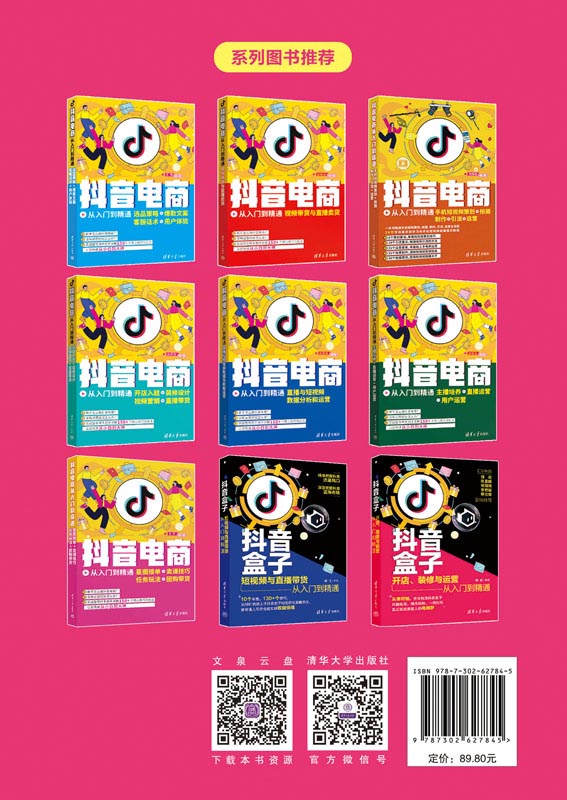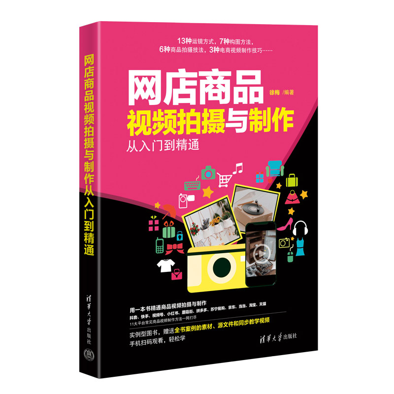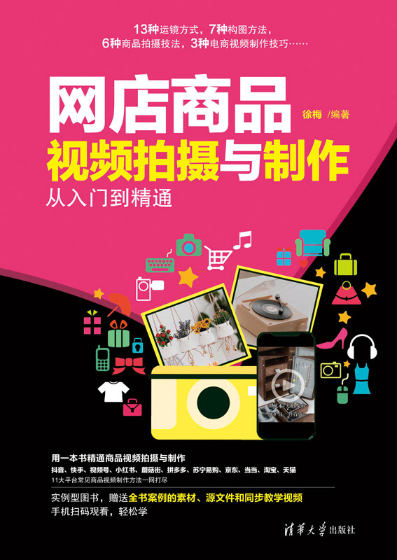 商品视频怎么拍?如何剪辑?本书通过淘宝、天猫、京东、当当、拼多多、苏宁易购、 小红书、蘑菇街、抖音、快手、视频号十一大平台的案例,让读者精通商品视频的拍摄与制作。 本书分为前期拍摄篇和后期制作篇,具体内容安排如下。 前期拍摄篇:从商品视频的拍摄技巧出发,介绍了设备、脚本、布景、用光、运镜、构 图以及实用的商品拍摄技法,让商家轻松拍出精美的视频效果。 后期制作篇:从商品视频的剪辑制作出发,介绍了运用剪映 App 制作主图视频、商详(商 品详情)视频、宣传视频、种草(推荐好货)视频和推广视频的操作方法,手把手教商家制 作出**商品视频。 本书案例丰富,结构清晰,适合想运用视频提高商品销量的网店商家系统地学习技巧和 方法;也适合想通过视频带货变现的自媒体博主掌握爆款视频的制作技巧,提高带货转化率; 还适合已经有视频拍摄和制作基础的商家继续学习,提升技能。 本书资源包中给出了书中案例的教学视频、效果文件和素材文件。读者可扫描书中的二 维码及封底的“文泉云盘”二维码,手机在线观看学习并下载素材文件。