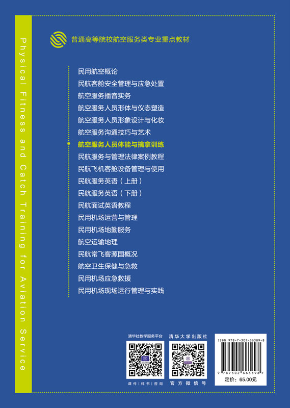 "《航空服务人员体能与擒拿训练》依据高校航空服务人员培养方案、教学整合计划编写,共分两篇:体能篇介绍体能训练的基础知识和常用训练方法,主要对航空服务人员较高强度的工作给予指导,旨在增强航空服务人员的体质,并以体能训练为手段获得舒缓工作压力的方法;擒拿篇对擒拿的基本理论、基本技术和战术进行介绍,主要针对航空服务工作中出现的突发冲突事件,培养航空服务人员战胜歹徒的基本技术和战术,确保飞行安全。 《航空服务人员体能与擒拿训练》既可作为民航院校航空服务类专业学生的教材,也可作为航空公司安全员和其他岗位员工的培训用书,还可作为有志于从事民航服务类职业人士求职面试的体能测试和技能测试参考书,以及喜欢健身和擒拿格斗术的人士的补充读物。 "
