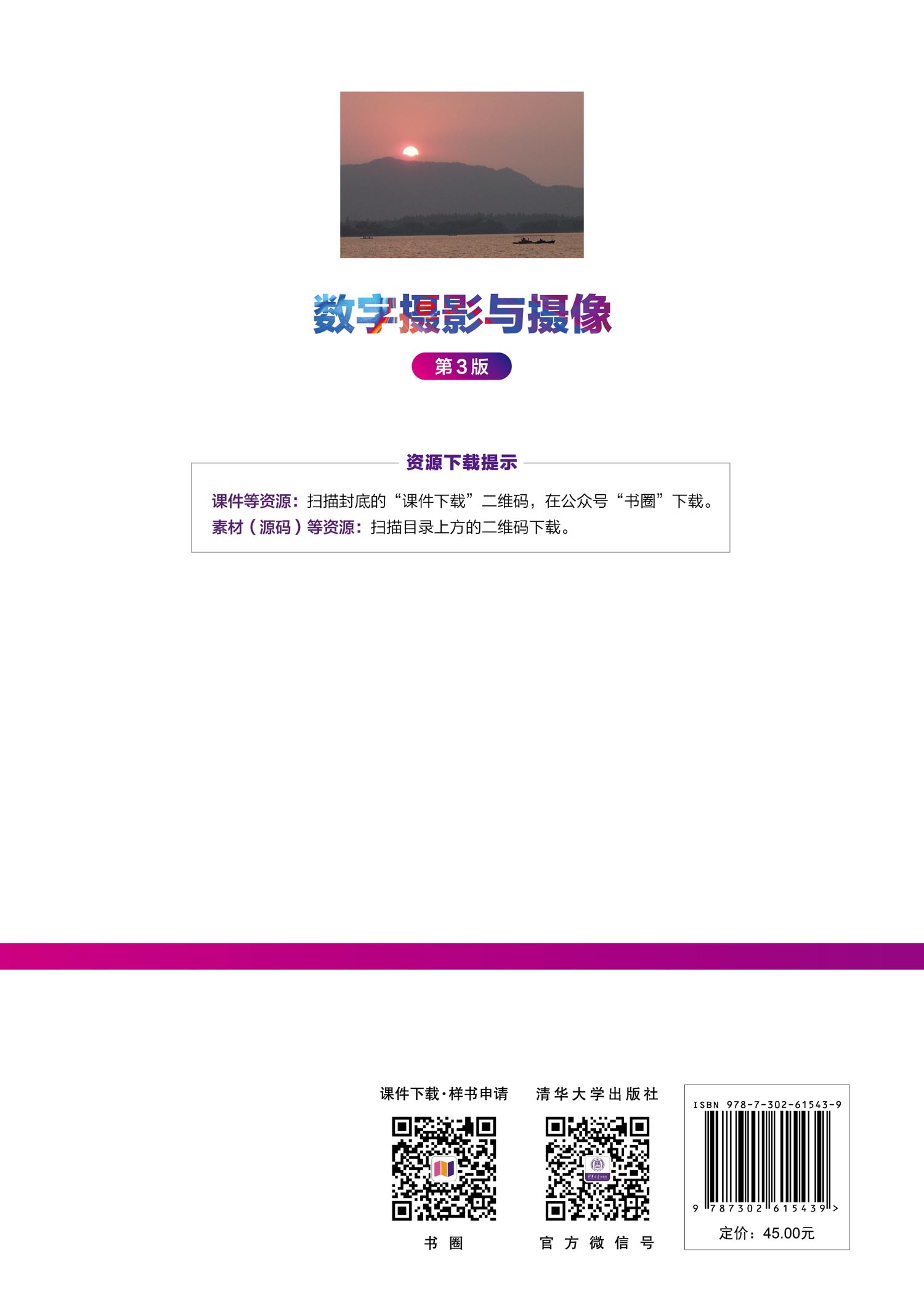 前言 习近平总书记在党的二十大报告中指出: 教育、科技、人才是全面建设社会主义现代化国家的基础性、战略性支撑。必须坚持科技是第一生产力、人才是第一资源、创新是第一动力,深入实施科教兴国战略、人才强国战略、创新驱动发展战略,这三大战略共同服务于创新型国家的建设。高等教育与经济社会发展紧密相连,对促进就业创业、助力经济社会发展、增进人民福祉具有重要意义。 《数字摄影与摄像》(第2版)自2017年2月出版以来被众多院校的数字媒体类专业选作教材,随着时间的推移,本书在内容、资源配套等方面急需改进,以跟上时代步伐。本书第3版在保留第2版总体结构和特色的基础上做了以下修改或补充。 (1) 着力把党的二十大精神融入教材。根据教材内容的特点设计了关于党的二十大精神的实践活动,学生通过拍摄系列照片、微视频等形式学深、悟透党的二十大精神,并充分发挥数字传媒优势,多途径传播党的二十大精神,做到真学真悟、笃学笃行,强调人人都是党的二十大精神的传播者和践行者。 (2) 对教材部分内容进行了优化。新版补充了更多具有价值性、案例性的图片资源,做到经典性、时代性和价值性相结合。 (3) 对配套资源进行了更新,确保好用、够用和实用。 本书对数字摄影和摄像的主要技术和艺术进行了较为全面的介绍,包括数字摄影摄像技术、数字摄影摄像艺术、数字摄影摄像专题和摄影摄像新技术四部分,共计11章。第1、2章侧重数字画面拍摄技术,包括数码相机和数字摄像机的基本介绍、使用和拍摄要领。第3~8章侧重数字画面拍摄艺术,包括数字画面的景别和角度、数字画面的构图、数字画面拍摄用光、固定画...