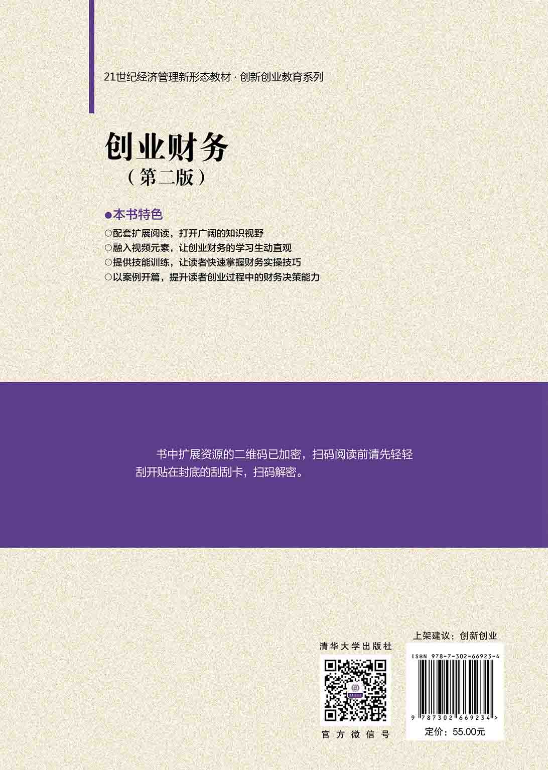 第二版前言 发展新质生产力,为经济增长提质增效,需要大量创新创业企业的探索和开拓,需要相应政策和部门的大力支持与保驾护航,还需要创新创业咨询和服务等行业的“软件”支持。本书可以为创新创业企业和创新创业服务人员提供必备的财务知识,助力创新创业企业取得成功,创造更多价值。 本书第一版面世之后,国家的创新创业环境和政策变得更加有利于创新创业企业的发展,更多的高校也开设了创新创业财务类的相关课程;不少用书院校的教师对于内容更新提出了相应建议,清华大学出版社也对教材再版给予了鼎力相助。以此为契机,我们系统梳理总结了影响创新创业企业外部环境的变化,更新了适用的法律法规和政策规定,用最新数据支持教材观点,调整了相应模块,提高可读性和应用价值。 每一章增加学习目标,同时梳理其课程思政点,让读者在目标引领下开始阅读,提高学习效果,并提升自己的财务素养,加深了解所学知识在学习、生活和未来工作中的作用,激发学习兴趣。每章以知识导入或故事思考开始,引发读者好奇心,以创业案例和技能训练结束,应用所学知识、检验学习结果,有始有终,形成学习闭环。 全书增加了“知识导入”“案例思考”“创业案例”“课程视频”等模块,帮助读者更好理解书中的知识;将原来的脚注改为尾注的方式,增强教材的易读性;增加“技能训练”模块,方便读者及时自查学习情况,便于后续有针对性开展学习;增加部分扩展阅读二维码,提供更多相关案例和创业故事等内容,扩展知识的获取方式和渠道,为不同学习习惯的学生学习提供便利;增加了纳税筹划的内容,方便广大创业者更好利用国家的税收政策,享受税收减免,将更多资金和利润留在企业继续发展;更新相关案例和章...