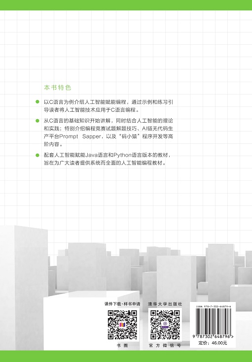 前言 党的二十大报告提出“实施科教兴国战略,强化现代化建设人才支撑”。深入实施人才强国战略,培养造就大批德才兼备的高素质人才,是国家和民族长远发展的大计。为贯彻落实党的二十大精神,筑牢政治思想之魂,编者在牢牢把握这个原则的基础上编写了本书。 人工智能作为当前热门的技术领域,为编程带来了许多新的思路和方法。C语言是一种广泛应用于系统开发、嵌入式设备、游戏开发等领域的高级编程语言,掌握C语言编程对于计算机和非计算机专业的学生而言都是至关重要的。本书从C语言的基础知识开始讲解,包括变量、数据类型、运算符等;然后介绍如何使用C语言进行条件控制、循环结构和函数编写;最后讲解C语言的高级特性。本书结合人工智能的理论和实践,通过具体的示例和练习引导读者学习将人工智能技术应用于C语言编程的方法。 除了介绍人工智能辅助C语言的方法以外,本书还将介绍编程竞赛试题和作者团队研发的AI链无代码生产平台Prompt Sapper,以及开发的小产品“码小猿”等高阶学习内容。通过实际案例和项目,本书将帮助读者更加系统地了解如何使用C语言编写程序。 本书作者黄箐、廖云燕和曾锦山来自江西师范大学,邢振昌来自澳大利亚CSIROs Data61。 感谢研究生张文潇和本科生钟晨、胡海森、张志杰、谢航、刘晨华、邓雅娇、尹国节和徐畅等同学在本书编写过程中做出的贡献。 希望本书能够帮助读者掌握C语言编程的基础知识,了解如何将人工智能技术应用于自己的编程项目。 尽管我们尽了最大的努力,但书中难免存在不妥之处,欢迎各界专家和读者朋友提出宝贵意见。如果读者在阅读过程中遇到困难,可以通过电子邮件与我们取得联...