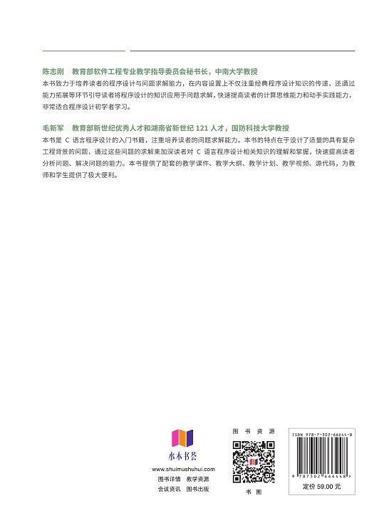 "注重经典C语言程序设计知识的传递,通过实际应用背景强的案例来进行程序的设计与实现,提高学生的问题求解能力。