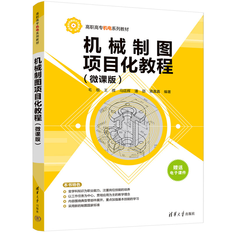 "《机械制图项目化教程(微课版)》构建了以学习任务为主线的教材组织结构,把“教材”变成“学材”,体现了以学生为主体,教师主导的教学模式,助推“三教”改革,利用信息化技术,使教材“立起来”, 对接“1+X”技能等级证书,课证融合,赛训一体,校企合作,共同完成编制。