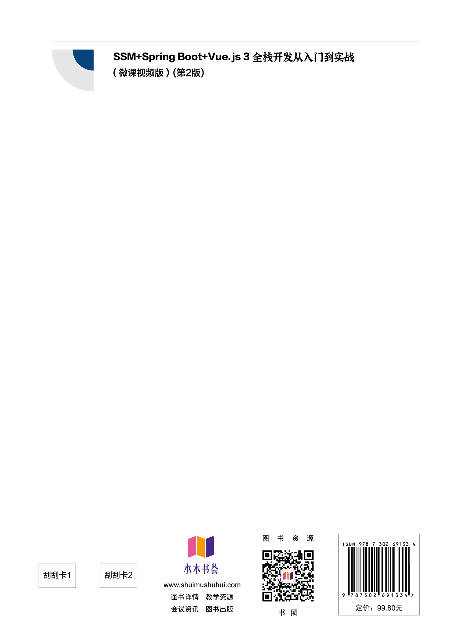 "本书系统地介绍SSM、Spring Boot、MyBatisPlus和Vue.js 3的重要内容。为便于教学,本书提供丰富的配套资源,包括