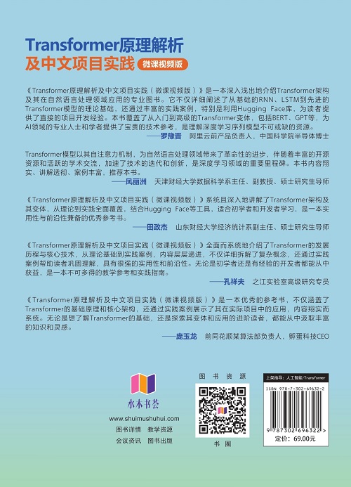 "本书深入浅出地介绍了深度学习中的序列模型及其发展历程,重点讲解了Transformer架构及其变体的原理与实战应用。全书共5章,旨在帮助读者从理论基础到实战应用,全面掌握Transformer技术。 第1章详细介绍RNN和LSTM的原理、代码实战及存在的问题与挑战。第2章全面剖析了Transformer的总体架构、核心思想及各组成部分的实现方法。第3章从自定义代码出发,详细地讲解了词嵌入、多头注意力层、前馈网络层、编码器层和解码器层的构建方法,以及如何训练Transformer模型。第4章介绍Transformer变体与进阶部分。第5章介绍利用Hugging Face实践Transformer,首先介绍了Hugging Face社区和Transformers库,然后通过实际应用案例,如文本分类、情感分类、命名实体识别等,展示了如何使用Transformers库进行项目开发。最后,讲解了模型微调的各种方法,以及Transformer的影响和未来展望。 本书适合对深度学习、序列模型和Transformer感兴趣的读者,无论是初学者还是有一定基础的开发者都能从中获得丰富的理论知识和实践经验。同时,本书也可作为高等院校和培训机构相关专业的教学参考书。 "