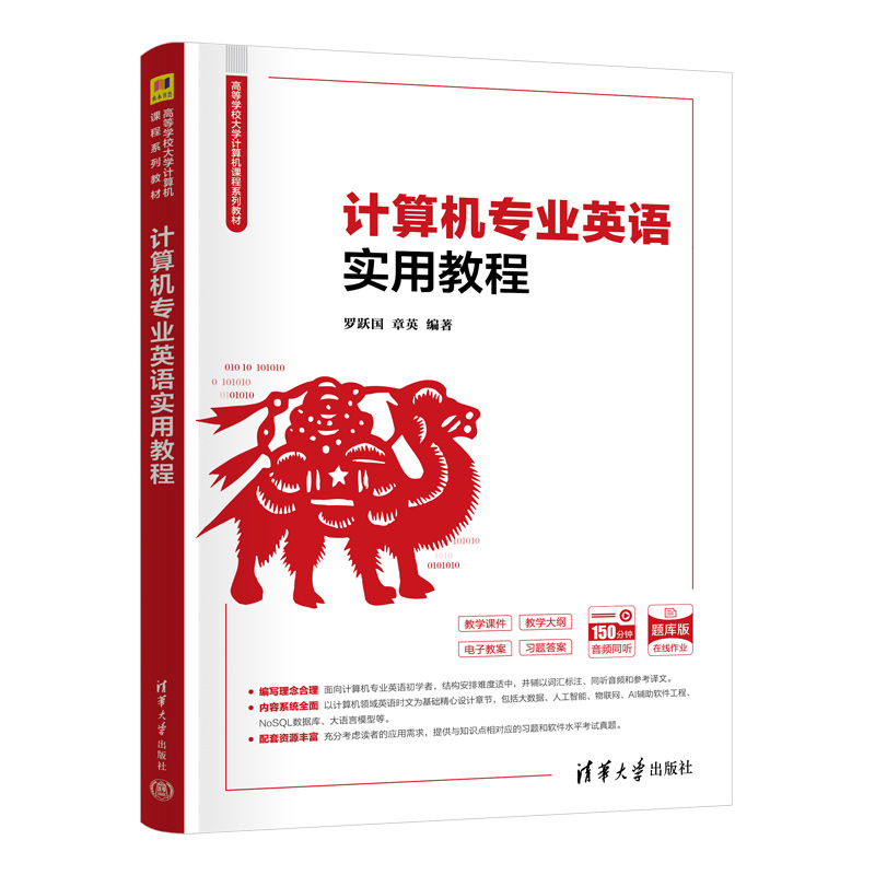 前言 党的二十大报告指出:教育、科技、人才是全面建设社会主义现代化国家的基础性、战略性支撑。必须坚持科技是第一生产力、人才是第一资源、创新是第一动力,深入实施科教兴国战略、人才强国战略、创新驱动发展战略,这三大战略共同服务于创新型国家的建设。高等教育与经济社会发展紧密相连,对促进就业创业、助力经济社会发展、增进人民福祉具有重要意义。 近年来,计算机科学理论发展日新月异,特别是大数据、人工智能、互联网等领域的突破性进展,引领人类社会步入第四次工业革命的浪潮。在多年的计算机英语教学实践中,编者深切体会到,这门课程迫切需要一部集新颖性、可读性、配套资源丰富性于一体的教材,以便更有效地推动计算机英语的教学,提升学生的国际竞争力。为此,编者精心编写本书,旨在为计算机科学、信息技术及其相关领域的学习者和从业者提供一本全面覆盖、新颖实用、易于理解的专业英语教材。 本书的内容设计充分考虑计算机科学的广泛性和深度,从计算机硬件与软件的基础知识,到人工智能与机器学习的前沿技术,再到软件开发、数据库管理、网络技术等关键领域,力求全方位、多层次地展现计算机科学。在编写过程中严格把控术语的准确性,注重表达的地道性,以使学生在掌握专业术语的同时学会如何在专业语境中灵活运用。 本书从内容体系上进行了深度设计,具有以下主要特色。 (1)选材广泛、内容难度适中。本书面向高校计算机相关专业,在内容的选材上投入大量精力,以国外优秀教材和相关权威网站资料为主。本书英文表述通俗易懂,图文并茂,尽量避免使用生僻的单词及冗长而抽象的句式结构,并在内容体系和英文表述上进行精心整理和编排。 (2)内...