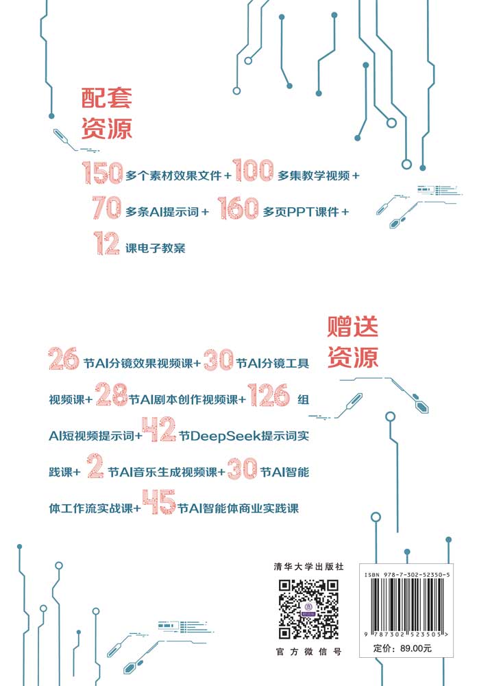 配套资源:150多个素材效果文件+100多集教学视频+70多条AI提示词+160多页PPT课件+12课电子教案