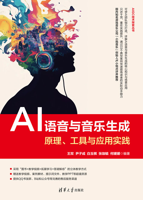 "《AI语音与音乐生成》结合33个典型案例,从AI语音与音乐生成的发展历史、基本原理、平台与工具、场景应用、综合实战5方面详细介绍其核心知识、主流工具、操作技巧和应用实践等,从而帮助读者系统掌握AI语音与音乐生成的相关知识,并给相关企业解决真实场景问题提供参考。《AI语音与音乐生成》提供配套教学视频、案例素材、提示词文件、语音类工作流文件、教学PPT和软件安装文件等超值配套资源,帮助读者高效、直观地学习。 《AI语音与音乐生成》共19章,分为5篇。第1篇AI语音概论,系统介绍AI语音发展历史、AI语音技术引发的社会争议和AI语音未来展望;第2篇音频技术原理,主要介绍语音识别、语音合成和音乐生成的基本原理等;第3篇AI语音平台与工具,主要介绍国内综合语音平台、国外综合语音平台、常用的专业化语音平台、重要的开源AI语音模型等;第4篇AI语音场景应用,主要介绍声音处理、声音识别、语音合成和音乐生成4种常见的AI语音场景应用;第5篇AI语音综合应用实战,首先介绍AI语音类工作流,然后介绍如何综合使用前面章节介绍的工具、模型和技巧,带领读者进行应用实践,从而完成AI翻唱、文案配音、 “复活”亲人和郭老师说英语4个热门AI语音综合应用实战案例。 《AI语音与音乐生成》内容丰富,讲解深入浅出,案例典型、适合自媒体创作、音乐创作、游戏配音和影视配音等相关领域的从业者与爱好者阅读,也适合高等院校和培训机构作为AI语音类课程的教材或培训用书。"