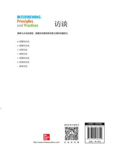 《访谈:原理与实践(第14版)》聚焦七大访谈类型,搭建访谈者和受访者之间的沟通技巧,结合人际传播基本原理和丰富的案例,分门别类介绍了调查性访谈、招聘访谈、求职访谈、绩效访谈、说服性访谈、咨询性访谈等不同类型访谈的特点和具体操作方法。每章设有互动练习与角色扮演案例,让学习者设计和实施各类访谈,有效地将相关理论与原则运用于各种实际访谈中,切实增强沟通交流技能。本书适合演讲、传播学、新闻学、商务、管理、教育、政治、护理、犯罪学、社会工作等专业师生学习参考。 本书适用于传播、新闻、演讲、商务、管理、教育以及社会工作类专业作为教材和教参使用。