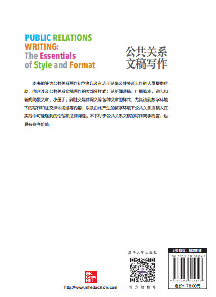 《公共关系写作(第8版)》能够为公共关系写作初学者以及有志于从事公共关系工作的人员提供帮助。内容涉及公共关系文稿写作的大部分样式:从新闻通稿、广播脚本、杂志和新闻简报文章、小册子,到社交媒体网文等各种文章的样式,尤其谈到数字环境下的写作和社交媒体沟通等内容,以及由此产生的数字环境下公共关系撰稿人在实践中可能遇到的伦理和法律问题。本书对于公共关系文稿的写作高手而言,也具有参考价值。
