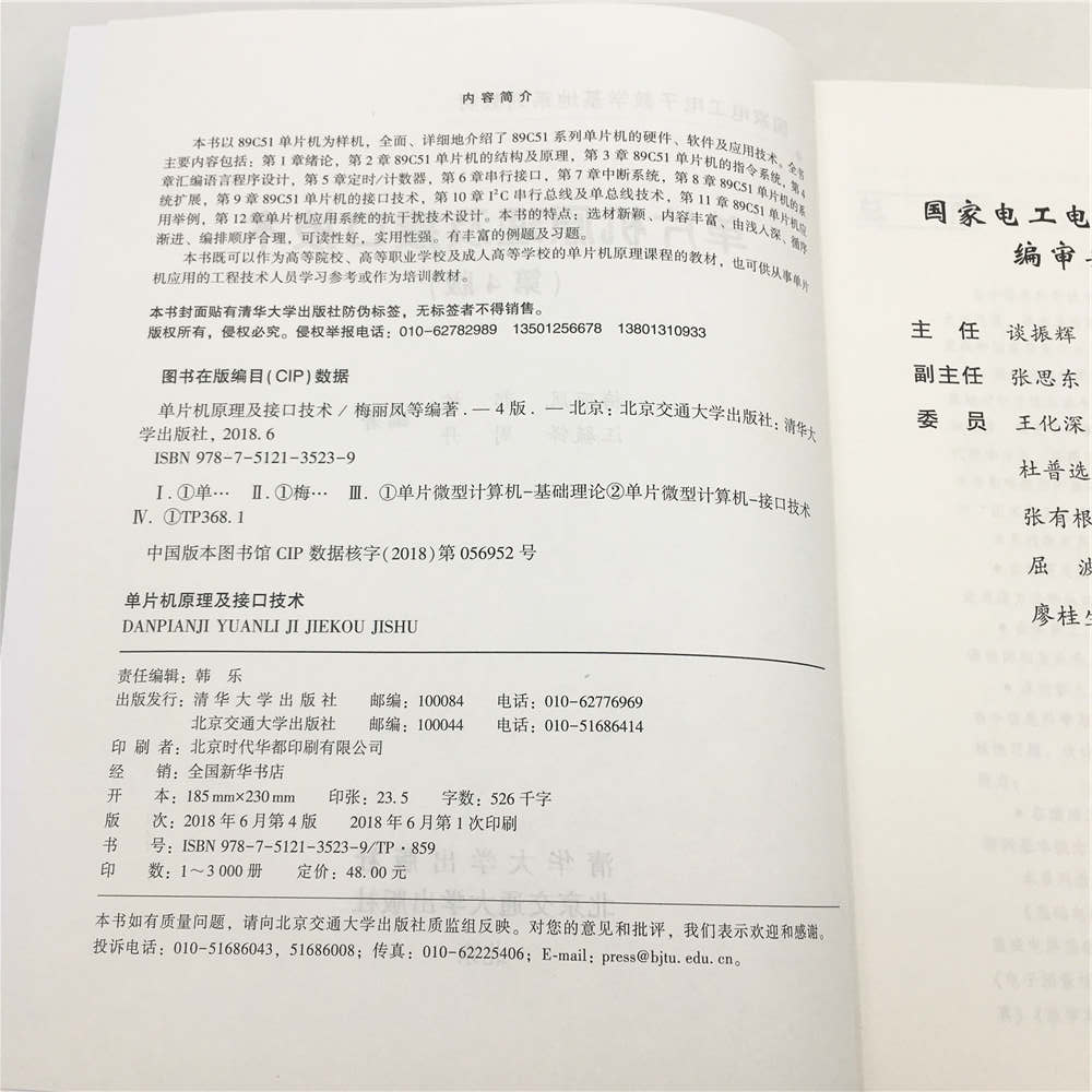 《单片机原理及接口技术》自2004年出版以来,经过2次修订,深得各大专院校同行的认可,并广受广大读者的厚爱,在此作者仅致诚挚的谢意。现鉴于单片机技术及嵌入式系统技术发展迅速,根据读者的反馈意见和实际应用的需要,决定对本教材再次修订。 本次修订仍以89C51单片机为样机,详细介绍了89C51单片机的硬件结构、原理、指令系统、接口技术及最新应用技术;在内容编排上,仍然保持由浅入深,循序渐进的编写顺序,分散难点,突出实用性。删去不常用的器件内容,对部分章节内容进行了调整和补充,在第11章89C51单片机应用举例中增加了新的应用案例,并配备了教学课件,以满足教学与自学的需要。 本书的再次修订由辽宁工业大学梅丽凤、郭栋和北京信息科技大学汪毓铎及辽宁理工职业学院周丹共同完成,其中第1、2、7章由郭栋编写和修订,第3、4章由周丹编写和修订,第5、6、10、11章由梅丽凤编写和修订,第8、9、12章由汪毓铎编写和修订,全书由梅丽凤策划和统稿。 本书的再次修订,得到了各高校同行专家与学者的热情帮助,他们对本书的修订提出了许多宝贵意见,在修订的过程中,参考了国内外大量的参考文献和教材,在此,谨向给予我们支持和帮助的单位、个人及作者表示最诚挚的谢意! 由于编者学识、水平有限,本书一定有许多疏漏、不妥乃至错误之处,敬请同行及读者提出宝贵意见。