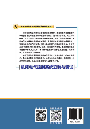 前言 机床电气控制系统安装与调试是高职高专电气类和机电类专业的一门实践性较强的专业课之一。本书根据高职高专的培养目标,结合高职高专的教学改革和课程改革,本着结合工程实际、突出技术应用的原则,由学校、企业、行业专家组成教材编写组合作开发。 本书彻底打破了课程的学科体系,在内容选取上以“必需”和“够用”为度,重视职业技能训练和职业能力培养,采用项目化教学法完成课程的教学,加强了专业知识的应用,突出了专业技能的提高。 为了方便教学,本书分为两部分: 电气控制部分和PLC技术应用部分。项目1~项目5重点讲解电气控制部分,其中介绍了常用低压电器,典型电气控制线路的原理与安装调试,常用机床的电气控制及故障分析以及直流电机的电气控制等。项目6重点讲解PLC技术应用部分,其中介绍了三菱FX2N系列PLC的结构、原理、编程软件的使用、基本逻辑指令及功能指令的使用方法等。 在教学使用过程中,本书并非全部内容都要讲解,可根据不同专业、实训环境、培养目标合理选用。建议参考学时数为72学时。 本书可以作为高职高专院校电气自动化、机电一体化、机电设备维护、数控技术等专业的教学用书,也可以作为成人教育、函授学院、中职学校的教材,以及企业专业技术人员的参考用书。 本书由莱芜职业技术学院秦贞龙担任主编,惠民职业中专高娟和山东莱芜新甫冠龙塑料机械有限公司胡延波高级工程师担任 副主编,多名一线老师编写,具体分工为: 高娟老师编写项目1,秦贞龙老师编写项目2~项目4,吴元修老师编写项目5,胡延波高级工程师编写项目6,全书由秦贞龙老师统稿。同时,感谢山东安澜电力科技有限公司韦志强高级工...