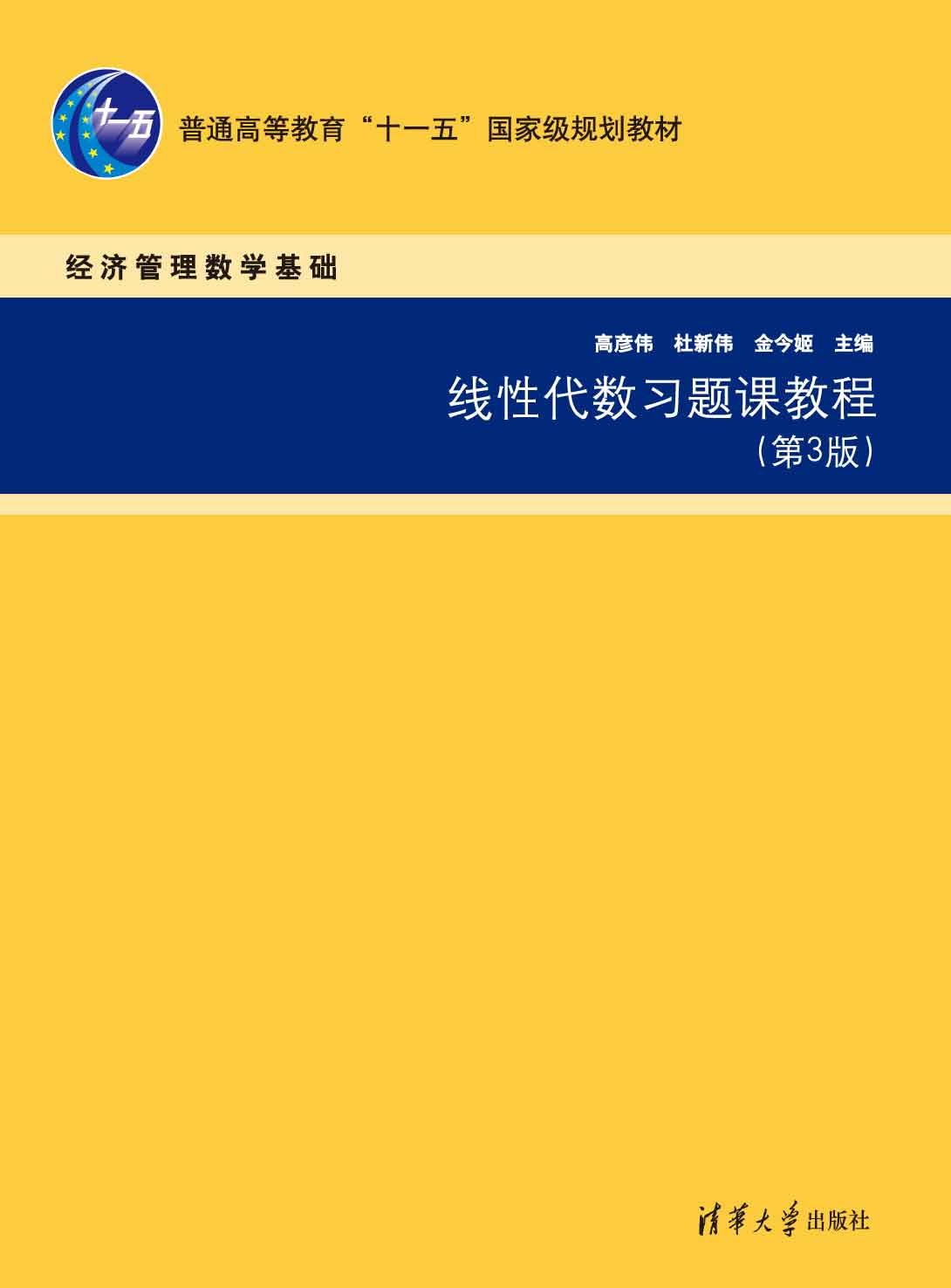 第3版前言 经济管理数学基础《线性代数习题课教程》教材第2版已出版10年了,感谢 兄弟院校的关注和广大同学们的使用.在国家推进新文科建设的背景下,根据当 前教学形势的发展及需求,并结合我们近几年的教学研究与教学实践,认为有必 要对本教材进行再版修订. 本次修订的指导思想: 修订的重点是将纸介质教材与数字资源进行一体化 设计,相互配合、相互支撑,进一步提高教材的适用性和对课程教学的支撑性,形 成新形态教材. 修订的重点内容是配套了数字资源,数字资源包括: 对重点和不易理解的 知识点进行细致讲解;对部分例题和习题中容易出现的错误及问题,也进行了分 析;在每章后针对学习要点增加了综合自测题,数字资源以二维码形式给出.同 时修正了第2版中存在的不当之处和部分习题中的错误,更换了部分例题和 习题. 参 加本书第3版修订工作的有金今姬(第1~2章),杜新伟(第3~4章),高 彦伟(第5~6章),金今姬、杜新伟承担了数字资源的编制、录制工作,全书由高 彦伟统稿. 在本书的修订过程中,得到了吉林大学本科生院、吉林大学数学学院和清华 大学出版社的大力支持和帮助,吴晓俐承担教材修订的编务工作,在此一并表示 衷心的感谢. 由于编者水平所限,书中的疏漏和不当之处,敬请广大读者批评指正,以期 不断完善. 作 者 2025年11月