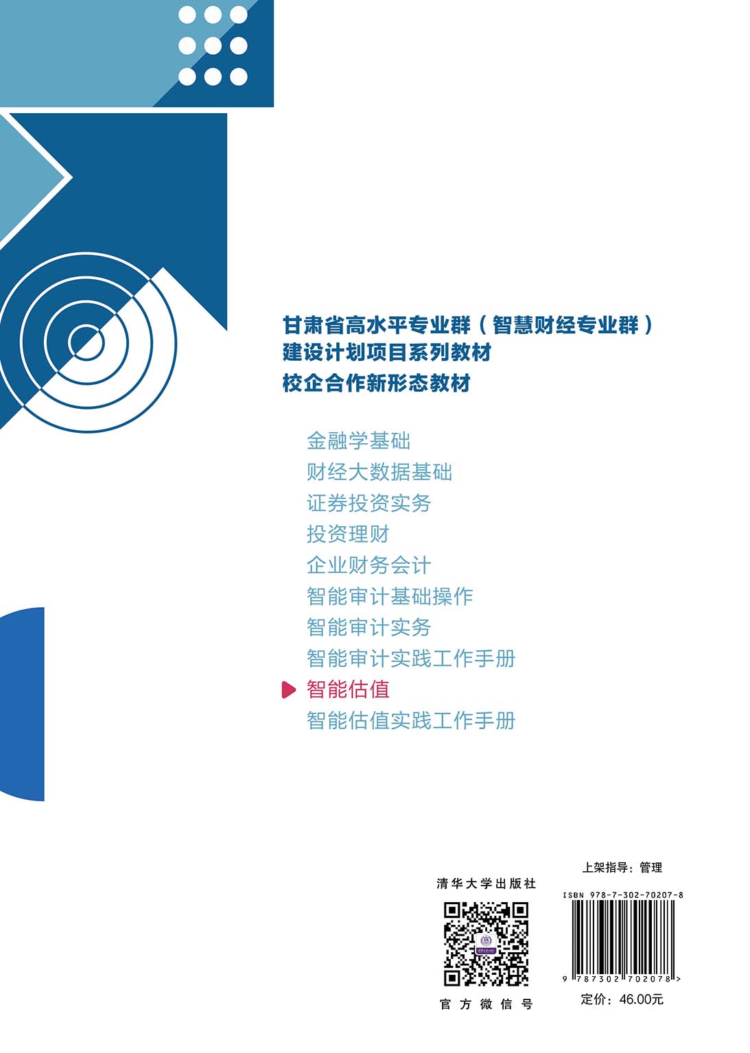 "智能估值是融合互联网、大数据、云计算、物联网、人工智能等现代科技手段赋能企业及资产的现时价值,适用于产业升级和创新创业现实需求的现代化价值计量行为,主要面向资产管理、市场调研、投资分析、评估、房地产经纪、房地产营销等工作岗位群。智能估值通过价值评价等专业服务,有效衔接不同层面的价值创造活动,以其“价值发现、价值判断、价值估计”的内涵,成为连接财经各领域的纽带。 《智能估值》可作为高等职业院校会计金融类专业的教学用书,也可作为相关企业的岗位培训和自学用书。 "