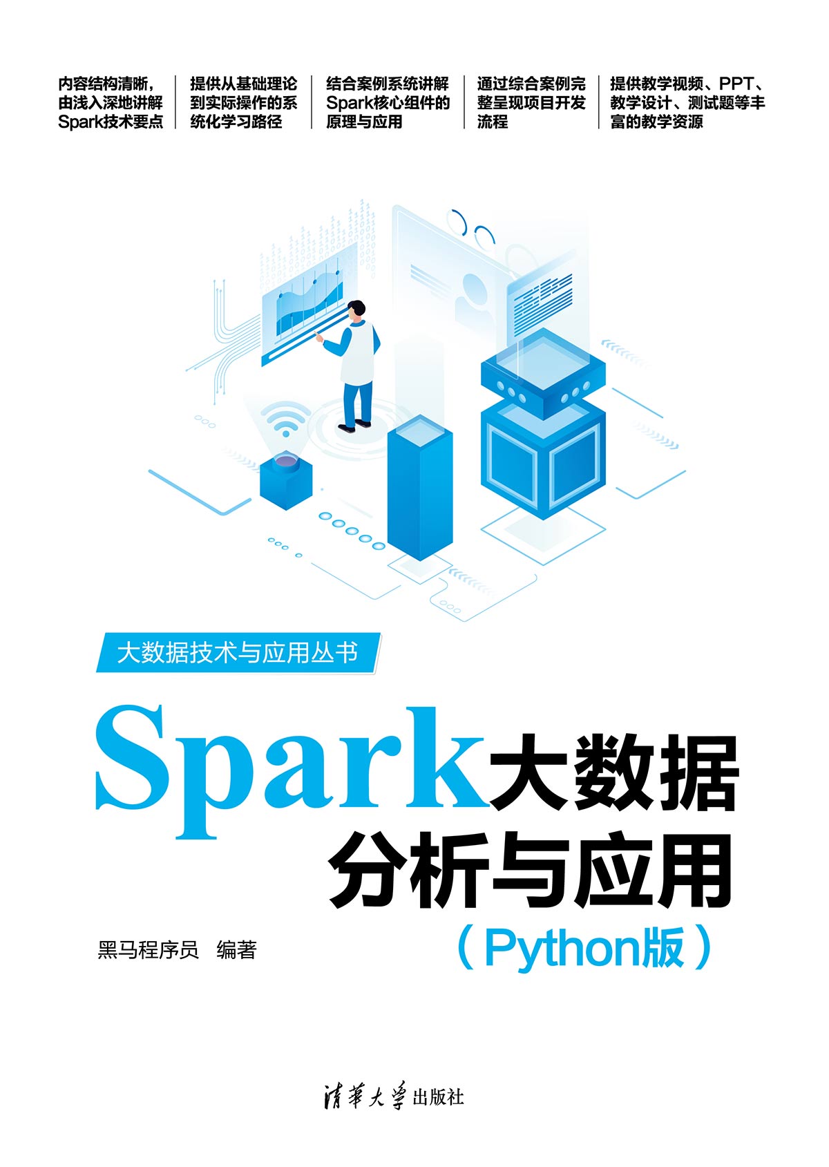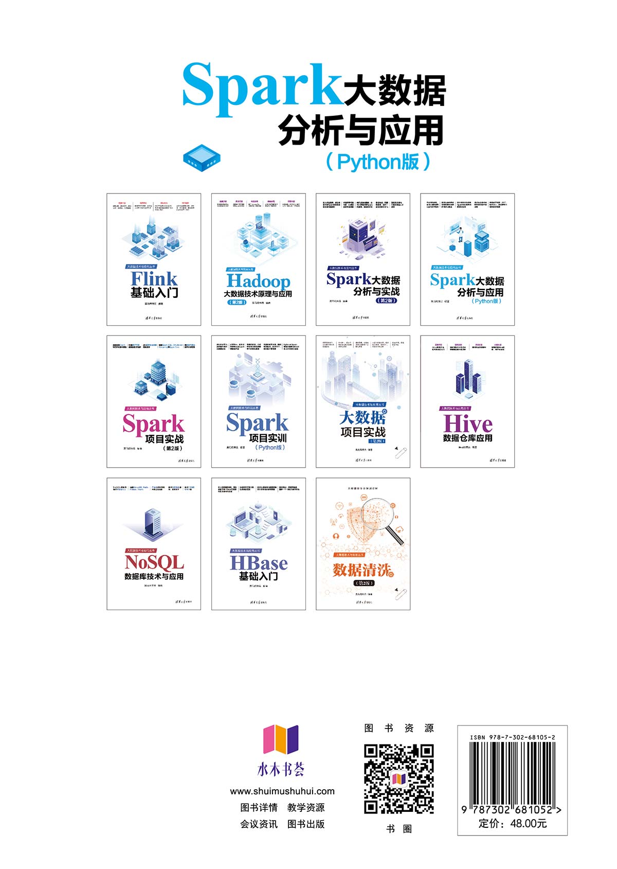 "本书以Spark 3.x和Python 3.x为主线,全面介绍了Spark及其生态体系中常用大数据项目的安装和使用。全书共8章,分别讲解了Spark基础知识、Spark部署、Spark RDD、Spark SQL、Spark Streaming、Kafka、Structured Streaming和Spark MLlib,并在最后完整开发了一个在线教育学生学习情况分析系统,帮助读者巩固前面所学的内容。 本书附有配套视频、教学PPT、教学设计、测试题等资源,同时,为了帮助初学者更好地学习本书中的内容,还提供了在线答疑,欢迎读者关注。 本书可以作为高等院校数据科学与大数据技术及相关专业的教材,也适合大数据开发初学者、大数据分析与挖掘的从业者阅读。 "