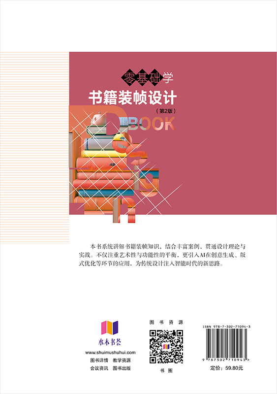 《零基础学书籍装帧设计(第2版)》引入AI设计灵感生成、版式优化与个性化装帧中的应用,展现智能设计新可能。