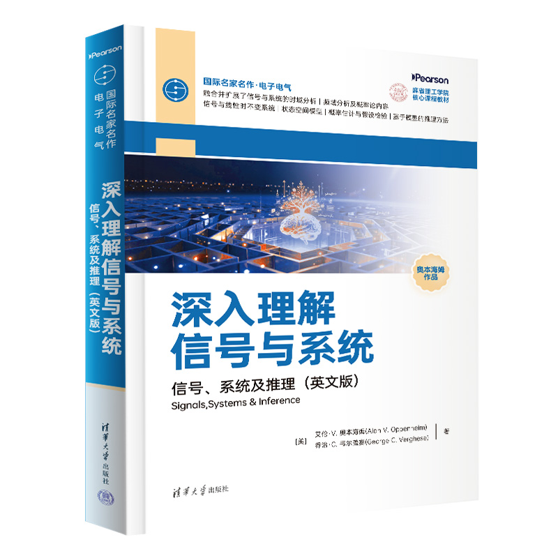 "《深入理解信号与系统——信号、系统及推理(英文版)》由麻省理工学院电气工程与计算机科学系两位资深教授合著,内容源自该校历经二十余年教学 打磨、持续优化迭代的“信号与系统”课程,是融合信号、系统与概率论知识的著作。本书突破传统教材仅 聚焦确定性信号与系统的局限,系统整合并拓展了信号与系统的时域分析、频域分析及概率论基础内容, 将三大知识模块深度融会贯通。书中先介绍信号与线性时不变系统、概率论等先修知识,再讲解状态空间 模型、概率估计与假设检验,最后深入阐述宽平稳随机信号、功率谱密度及信号估计与检测,涵盖群延迟、能控性与能观性、维纳滤波、匹配滤波等关键知识点,结合脉冲幅度调制、基于观测器的反馈控制等典型应用,着重强调基于模型的推理方法。 《深入理解信号与系统——信号、系统及推理(英文版)》面向电子与电气工程、计算机科学、控制工程、金融工程、生物医学工程等专业的本科生与研究 生,可作为“信号与系统”课程的教材或参考书。 同时,本书还可为相关工程技术人员和科研人员提供专业 的理论与应用参考。"