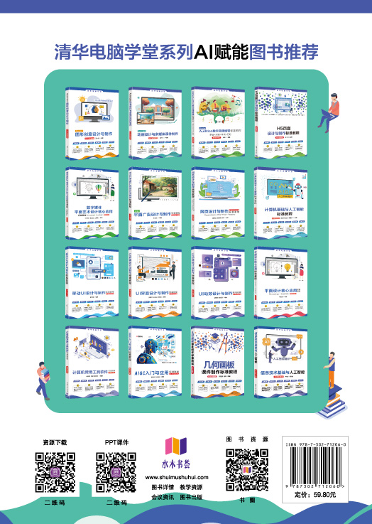 前 言 党的二十大报告首次将“推进教育数字化”写入报告,明确了教育数字化未来发展的行动纲领,这是党中央作出的重大战略部署。教材数字化和教育教学资源数字化是教材建设工作的重要组成部分,是纵深推进教育数字化战略行动、开辟发展新领域新赛道、塑造发展新动能新优势的重要内容。教育教学资源数字化的设计与应用可以为学校教学提供新的教学模式。在这一环节引入多媒体教学模式,可以明显增强数字化资源的交互性,使学生能够更深入地掌握知识内涵,提高学习效率。 为了让读者能独立高效地制作课件,特编写本书,其目的在于帮助读者解决课件制作中的实际问题,从而有效地提高制作效率。本书将教学设计与课件制作相结合,从易教、易学的角度出发,全面、细致地介绍课件制作的方法和技巧,同时也为读者提供一些制作思路,让读者在掌握一定的基础操作外,还能够提高审美能力。 本书特色 随着人工智能技术的飞速发展,AIGC已逐渐进入教学与办公领域,课件制作方式也随之发生了很大的变化。本书在讲解方法的同时,融入了AIGC技术的应用板块。读者不仅能快速生成课件所需的多样化素材,还能借助智能化工具实现课件一键生成的效果,从而大幅提升制作效率,降低重复劳动的成本。 1. 理论+实操,AIGC赋能,实用性更强 在讲解每个疑难知识点时,不仅配备相关的实操案例,还引入AIGC工具的使用示例。读者可以在学习中体验“智能化应用+手动操作”的双重路径,既能掌握传统方法,又能通过AIGC快速生成素材或解决问题,学以致用,效率更高。 2. 结构合理,全程图解,更直观易懂 采用全程图解的方式呈现每一步操作,并结合AIGC生成的演示案...