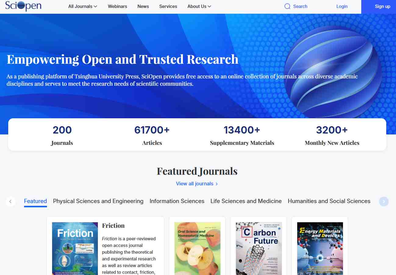 SciOpen, an international digital publishing platform for scientific, technical, and medical (STM) journals developed by Tsinghua University Press, has recently reached a major milestone: it now hosts more than 200 journals. This achievement not only highlights its strong capacity to attract high-quality Chinese journals, but also reflects its growing success in enhancing the global visibility of local journals. SciOpen has also drawn interest from international recognized institutions such as the American Institute of Mathematical Sciences (AIMS) and Tech Science Press.Launched in June 2022, SciOpen is committed to the mission of "Empowering Open and Trusted Research". It offers one-stop, customizable end-to-end digital publishing, global distribution and visualized knowledge se...